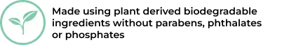 Contains plant derived biodegradable ingredients and is formulated without phosphates, phthalates and parabens.